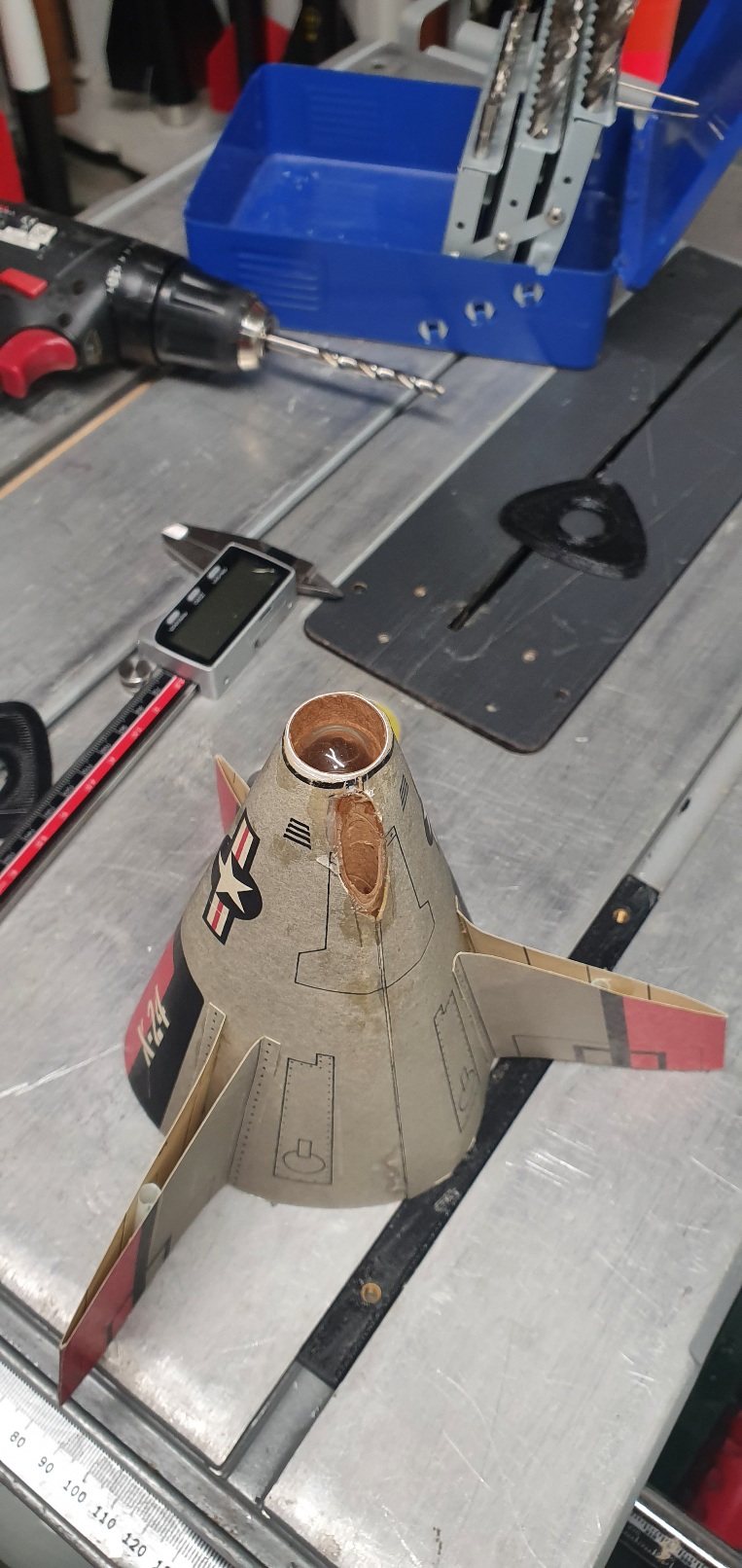 der "Gleiter" wirft nach Brennschluss die Motorhülse aus und soll dann zu Boden gleiten. Soweit die Theorie. Motorisiert kann man das mit B4 bis C3 evtl. auch D3. Das werde ich ausprobieren. Die Spitze muss ich noch Drucken, das Glas-Dings wäre nicht so gut, obwohl es nicht schlecht aussieht. Gruß Ralf