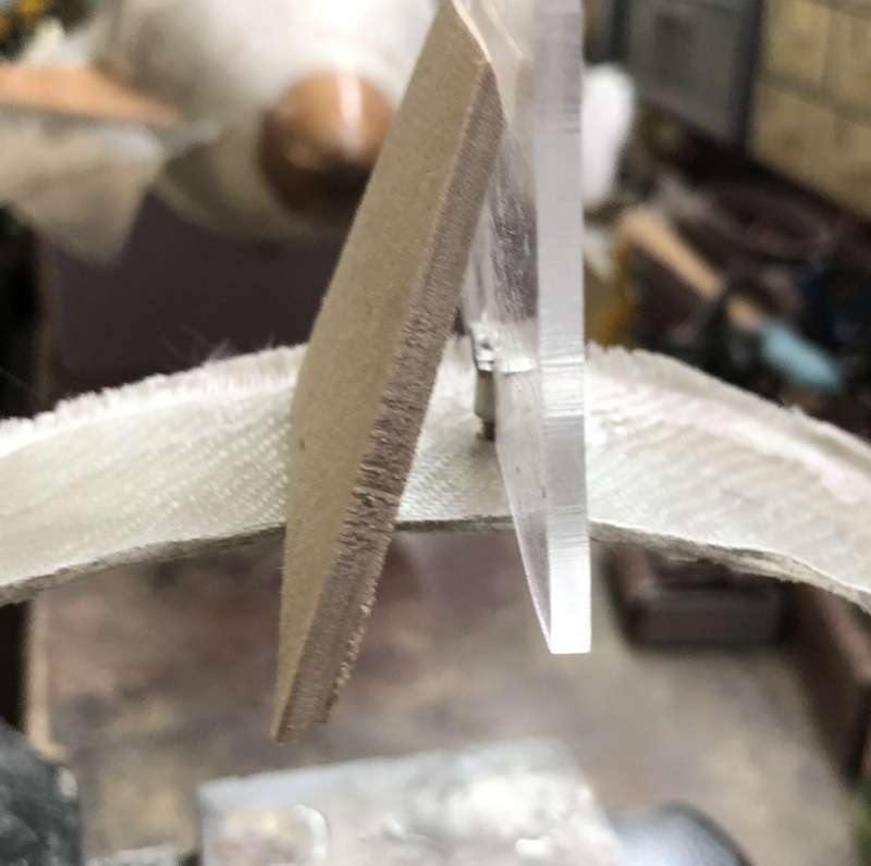 die Wandstärke ist, wie man sieht ca.2,5mm. Beim laminieren habe ich mich bei den Umdrehungen wahrscheinlich verzählt. 2mm hätten da gereicht. Nun, nicht mehr zu ändern. Die Vorflügel habe ich nochmals korrigiert. So sieht es besser aus.