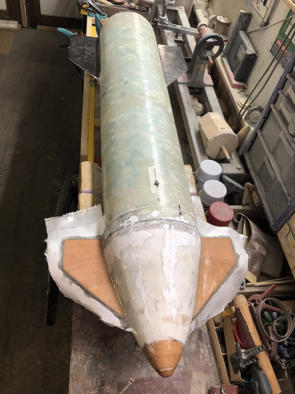 Die Weitwinkelobjektive der Handykameras können einen schon verrückt machen. Ich kann Euch sagen, dass das nie und nimmer so aussieht. Einen Flügel habe ich in diesem Jahr noch eingepasst, nachdem ich einen Nut in die Spitze gefräst hatte. Allen Rocketeers einen guten Rutsch