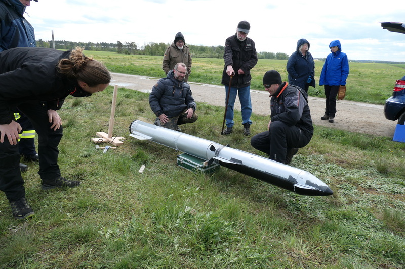 es musste nochmal der Kuppler nachgeschliffen werden... jetzt passt er aber... aufrichten zu voller Größe... sie steht! Ich meine, können wir so lassen... der Schwerpunkt wird gemessen... Die Waage sagt 15,4 kg Ciao, bis zum Start Rolli
