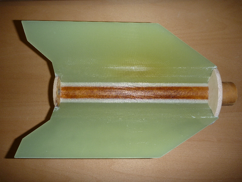 Zwischen Motorrohr und Leitwerk sind Fillets eingebracht, und zur Verstärkung mit 160g Glas laminiert. Endlich gehts mal wieder weiter! Im Augenblick grüble ich über Möglichkeiten einen Klappenmechnismus zu realisieren. Ausserdem möchte ich die noch notwendigen Komponenten (Hauptfallschirmkammer, Elektronik ect.) möglichst weit oben unterbringen. Desto geringer wird das zusätzlich nötige Ausgleichgewicht in der Spitze.