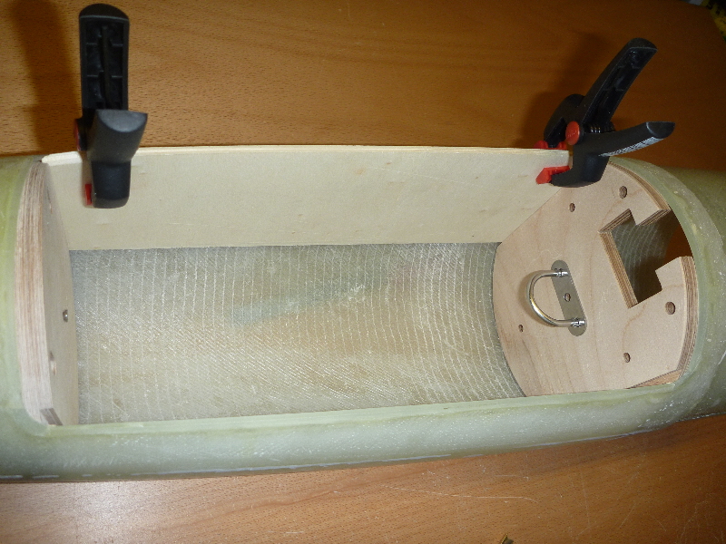 Leider habe ich keine 3D-Zeichnung der Spitze, sondern nur eine annähernd genaue 2D-Zeichnung. Das macht das Konstruieren der Teile für den Hauptfallschirmkasten aufwendiger. (Na ja, weniger aufwendig als mich jetzt in 3D-Konstruktion einzuarbeiten  ) Also der klassische Modellbauweg: Prototypen der notwendigen Teile werden aus billigem Pappelsperrholz gemacht, um zu sehen ob, und wie dann die späteren Teile zusammenpassen.
