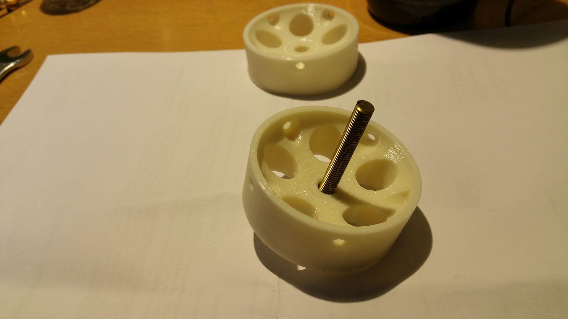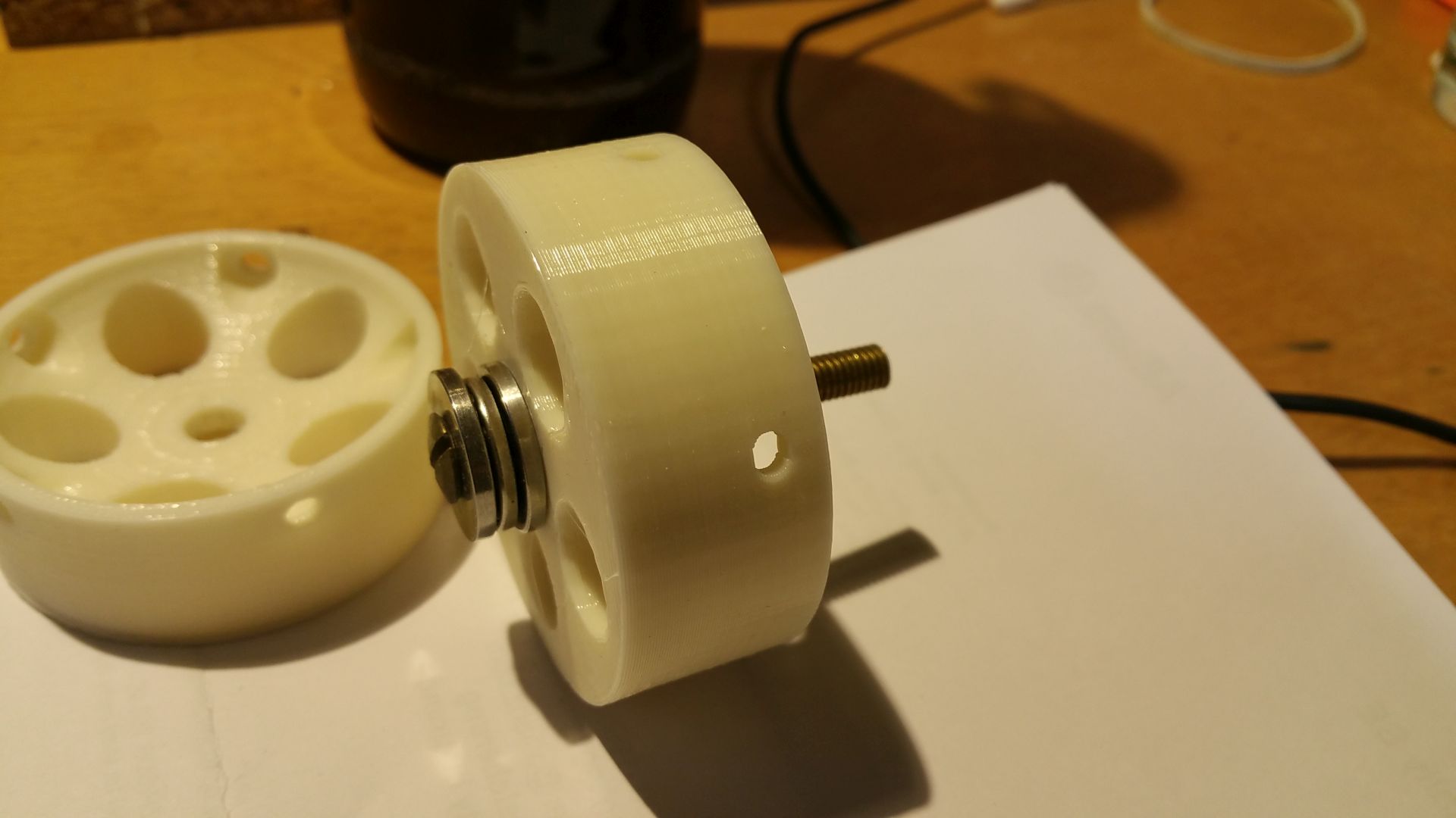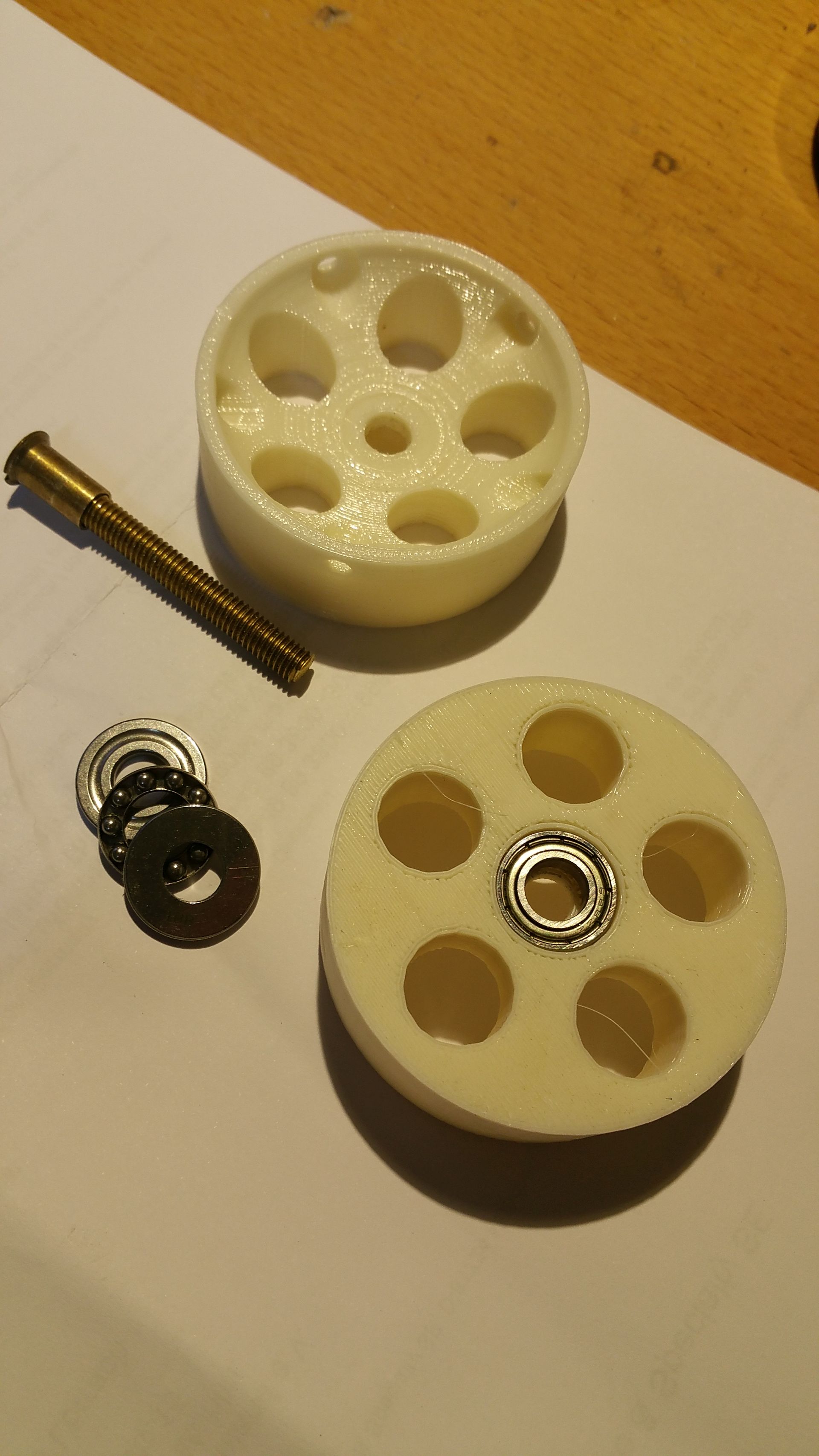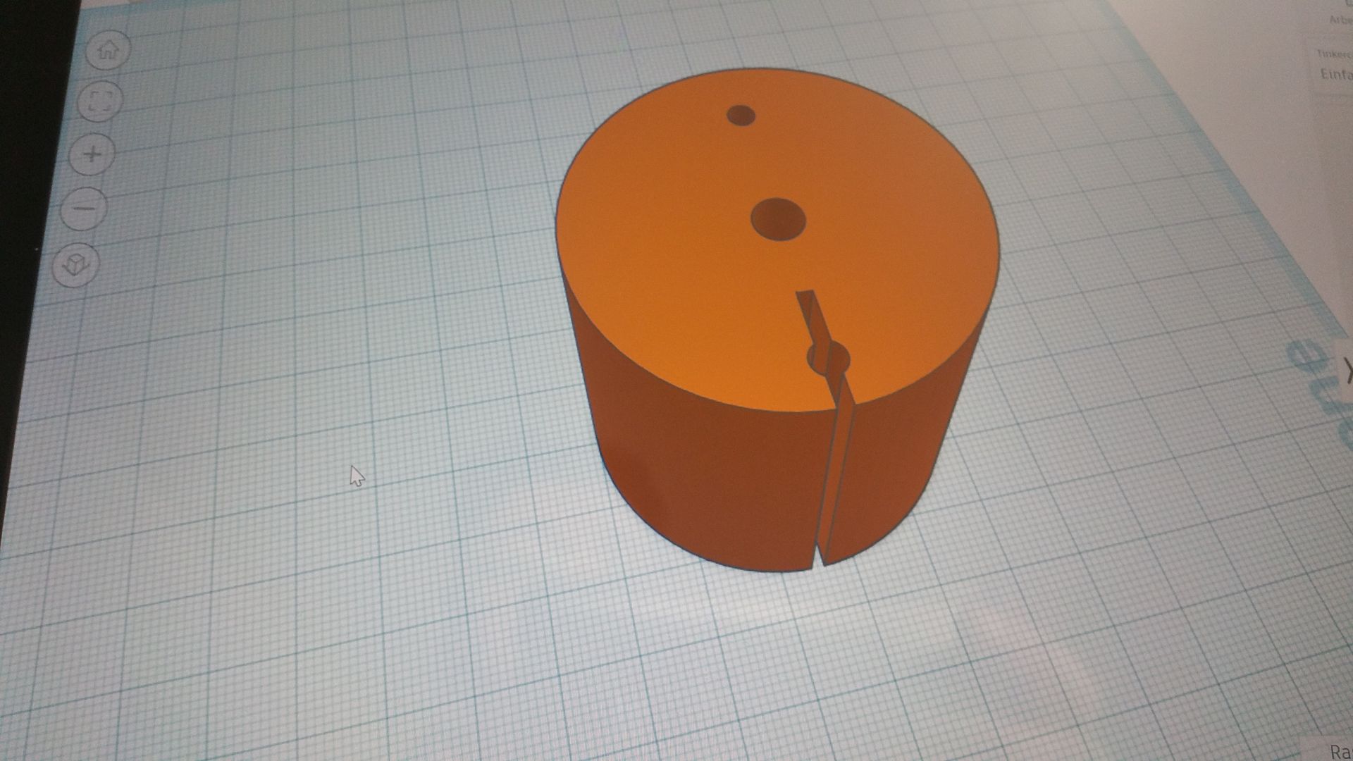 Bei der Vorbereitung für das Finnen einkleben musste ich leider feststellen, das dass Bluetube-Rohr an den Slots etwas "aufgequollen" ist und ich das Motorcasing nur noch schwer einschieben kann. Da ich zum Kleben ein Backpapier um das Casing wickeln wollte und das ganze ins Motorrohr passen muss werde ich das Rohr innen etwas ausschleifen. Um das Ganze nicht schwieriger als nötig zu gestalten habe ich schnell einen 50mm Zylinderschleifkopf gedruckt. Die Zeichnung: Trommel mit 120 Band. Die Schrauben halten das Schleifpapier in der Nut fest: Verdrehsicherung: fertig: Das schleifen war die reinste Freude  Jetzt past der Kram.