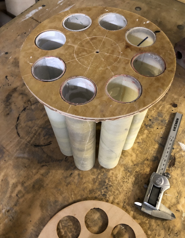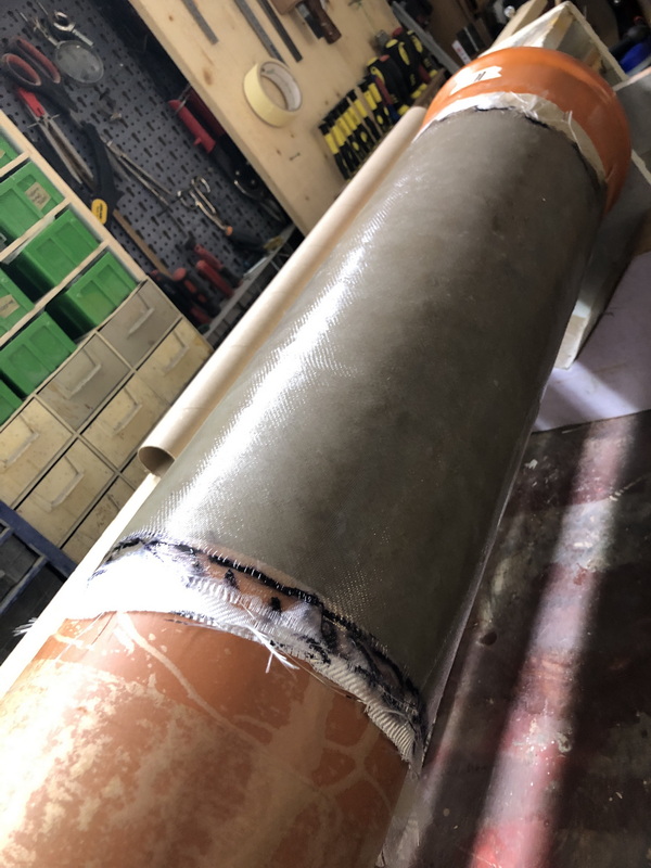 Nun weiterhin Bilder und der Baufortschritt. mittlerweile trocknet das 8. Motorrohr. die nächste große Tube brauche ich für den Schubring und für den Kuppler, d.h. Verbindung zum nächsten Rohr, bis zur E-Bay. |