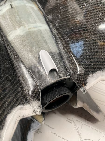 es geht ein kleines Stück weiter: Das 4" PML Rohr für das Innenrohr und das 4" Kupplerrohr konnte ich auf einer Formatkreissäge passend und pikobello winklig ablängen. Und wie der Zufall es so wollte. habe ich in einem Restekarton von mir noch ein 44cm langes Stück 54mm PML-Rohr gefunden, aus dem jetzt das 430mm lange Motorrohr wird. So muss mein schönes neues 54er Rohr gar nicht zersägt werden und kann für weitere Projekte ganz bleiben. Ist ja unfassbar, was das Zeuch mittlerweile kostet.... Hier ist das Innenleben mal lose zusammengesteckt. So soll das ganze Konstrukt später im Körperrohr sitzen. Aber am Stück geht das da nicht rein, jeder Ring möchte einzeln eingeklebt werden. Von daher geht das ab jetzt alles nur schrittweise und langsam, da jede einzelne Klebung in der warmen Küche übernachten möchte. Als erstes wird mit Hilfe von JB Weld temperaturfestem 2K Kleber aus meinem Motorrohr und dem Retainer ein Stück. Danach wird der Schubspant über das Motorrohr gesteckt und direkt auf dem Retainer aufliegend verklebt. Motorrohr mit Schubspant werden dann als ein Stück in die GFK Hülle eingesetzt, mit dem ersten Ring zentriert und verklebt. Sieht leider nicht so sauber aus, wie ich das gerne gehabt hätte, da die Harzpampe hierzu mit einem an einem Stab angebrachtem Löffel in den Tiefen des Körperrohrs appliziert wird. Egal, viel hilft viel. So sieht dann irgendwann mal das "Business End" aus Zweiter Ring aus 4mm Birke Dritter Ring aus 6mm Multiplex, hier endet das Motorrohr und beginnt das 4" Innenrohr Auf dem Ring eine Aufdoppelung aus 4mm Sperrholz als Zentrierung für das Innenrohr und als Verstärkung für den Aufhängepunkt der Schockleine. Unterhalb und oberhalb, (deswegen schaut das Motorrohr etwas durch den Spant hindurch) sind kurze Stützringe aus Phenolrohr aufgeklebt. Ich habe schon wesentlich massivere Aufhängepunkte gebaut, aber da war das Gewicht der Zelle auch drei, viermal höher. Das wird halten. Zwischen den Ringen müssen jeweils auch die Halter für die Railbuttons eingeklebt werden, da sonst die Ringe nicht mehr daran vorbei passen. Dazu habe ich M4 Gewindemuffen in einen Halter aus zwei Lagen Sperrholz eingeklebt und die so vorbereiteten Platten mit ordentlich angedicktem Harz und Glasmatte eingeklebt. Mit einer Schraube und einer Hülse wird der Halter in Position gehalten bis das Harz fest ist. Soweit Jan Geändert von Kabelmann am 19. Dezember 2025 um 23:17 |