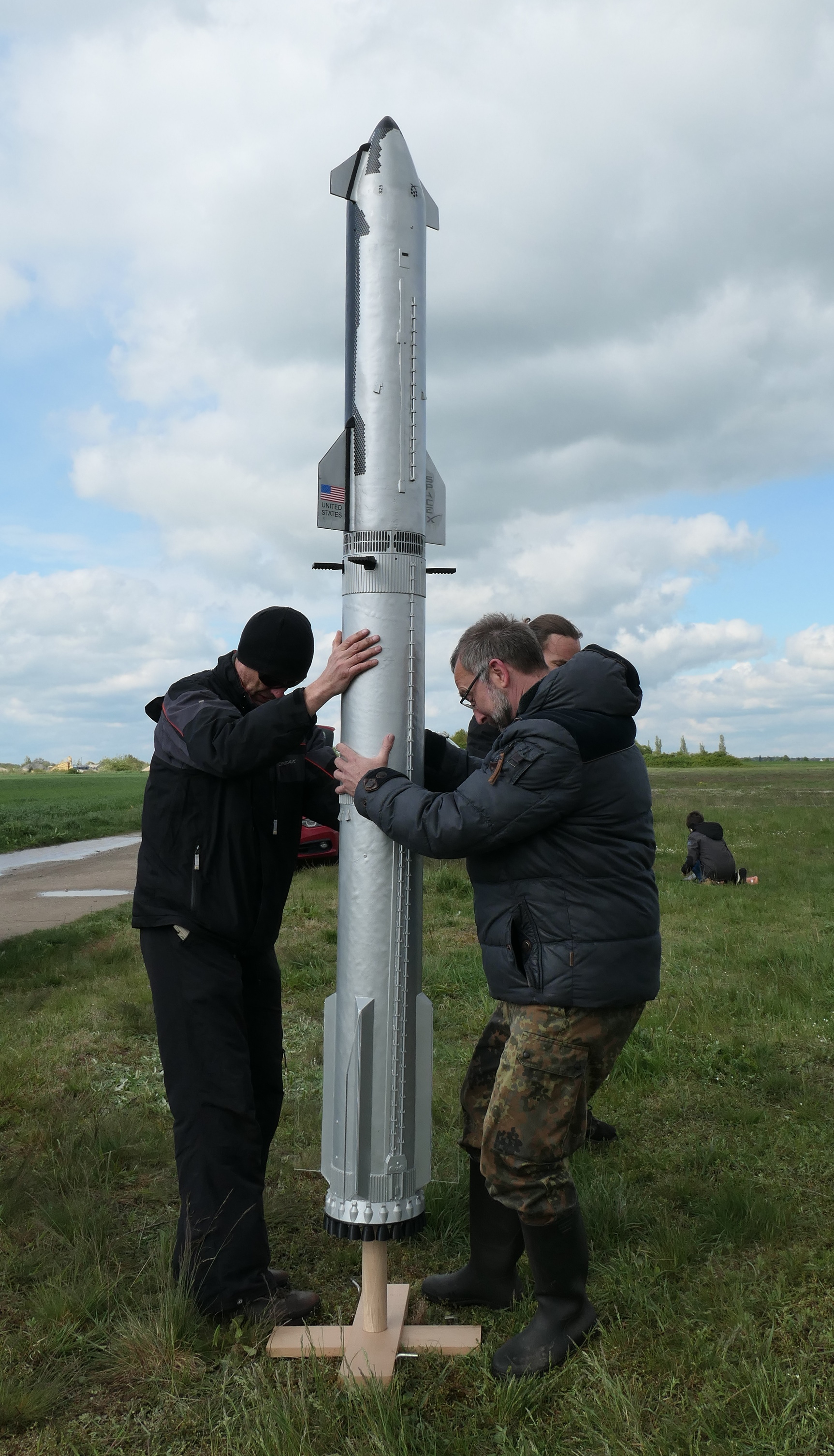 Es wae wie immer ein Event der Sonderklasse ![]() was das Starship betrifft, hier nur einige Bilder vom Flug: gegen 18.30 stand nach fast 3 stündiger Preppzeit auf der Rampe ich habe keine Ahnung wie zu dem Zeitpunkt meine Herzfrequenz war, als bei 3,2,1 die Zündung erfolgte. mit Getöse machte sich die 19 kg schwere Rocket auf den Weg. Bei 535m hatte die Erdanziehung gewonnen. Die Delayladungen stießen den Main aus. Bei 200m trennte sich auch der Rest. Der Booster wollte unbedingt im Wald landen, wo bei der Landung eine Acrylflosse abgebrochen ist. Ansonsten keine Schäden. Alles bestens. Ein großartiger Flug bei dem alles geklappt hat. Ich bin wirklich zufrieden. Ein großes Dankeschön an das Team, die MotorSponsoren sowie die vielen Helfer, welche das Starshipprojekt zu den großartigen Erfolg gemacht haben. Ich bin dabei eine Slideshow von dem Event zu erstellen. Den Link auf YouTube werde ich hier reinstellen. Rolli |