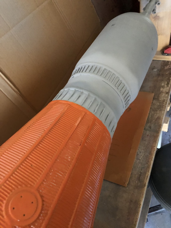 Sch.... habe wieder mal einen Fehler gemacht Das ist ja die Rückseite! Die Booster müssen aber genau anders herum. Muss die Booster tauschen, aber da werden die Befestigungslöcher wahrscheinlich nicht passen. Also, Probleme gibt es nicht nur bei der Nasa.